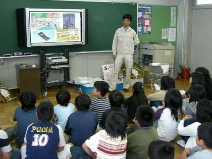 5月7日(月)、会議室でクラスごとに遺跡の移動教室を行いました。はじめに、春日市教育委員会文化財課の方に、春日井で発見された遺跡や古墳についての説明をしていただきました。小野小校区にある松河戸遺跡についての説明には、興味深く耳を傾けていました。