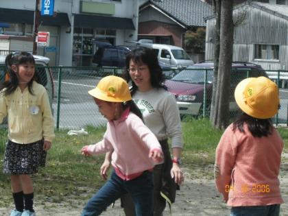 運動場で中川好美先生と遊んだよ