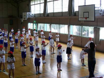 ラジオ体操は知っている人が多く、音楽に合わせて練習をしました。
