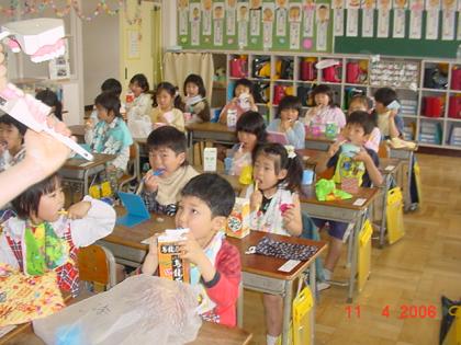 春日井市の「健康推進課」の方が来てくださり、歯みがき指導がありました。みんな歯ブラシをもち、鏡で自分の歯を見ながら一生懸命みがいていました。歯をきれいにみがくと、とても気持ちよくなりますね。