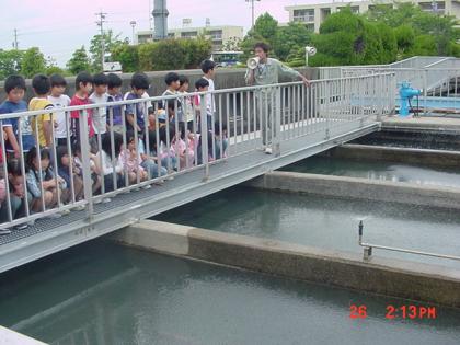 クリーンセンターでは、ごみ処理の方法をビデオで学習した後、施設内を見学しました。クレーンの大きさにびっくりした様子でした。福祉の里でお弁当を食べた後、高蔵寺浄水場へ移動しました。川から取り入れた水がきれいになっていく様子を見学しました。水をはやくきれいにするために、傾斜板を使っていることがわかりました。