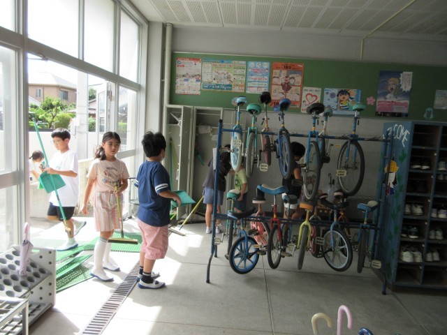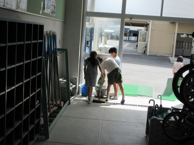 北館の昇降口の掃除の様子です。みんなが使う場所を丁寧に掃除しています。整理整とんもバッチリです。いつもありがとうございます。