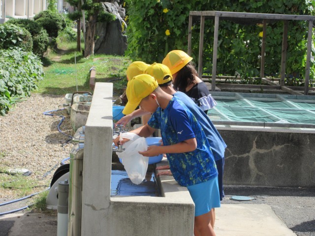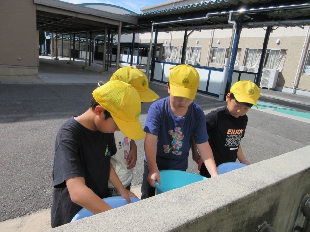 3年生の授業の様子です。算数では、1キログラムの水の量を実際にはかりを使って実感していました。はかりの使い方を学び「ぴったり1キログラム」を目指していましたね。この後班ごとにチャレンジします。