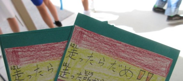 校舎から運動場まで出るアスファルトの部分は、転ぶと危ない場所ですね。生活安全委員会のみなさんが新企画「かめすけ運動強化週間」を呼びかけてくれました。みんなが走らず歩いてくれるとぶつかったり転んだりすることが減ります。ぜふ「かめすけ運動強化週間」を機会に、みんなの安心や安全について考えて行動しましょう。