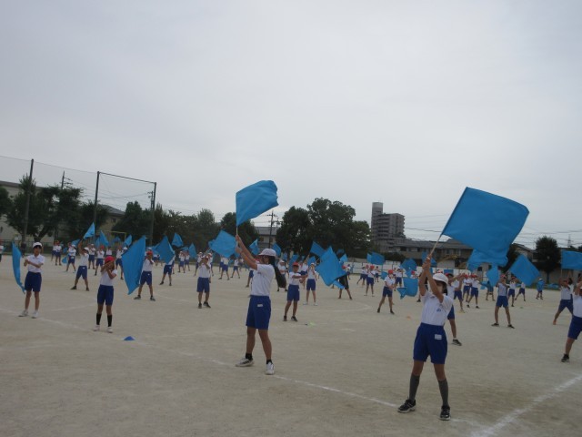 運動会練習の一コマです。日々練習を重ねながら、確実に上手になっていく6年生のみなさんです。頼もしい最上級生の姿ですね。