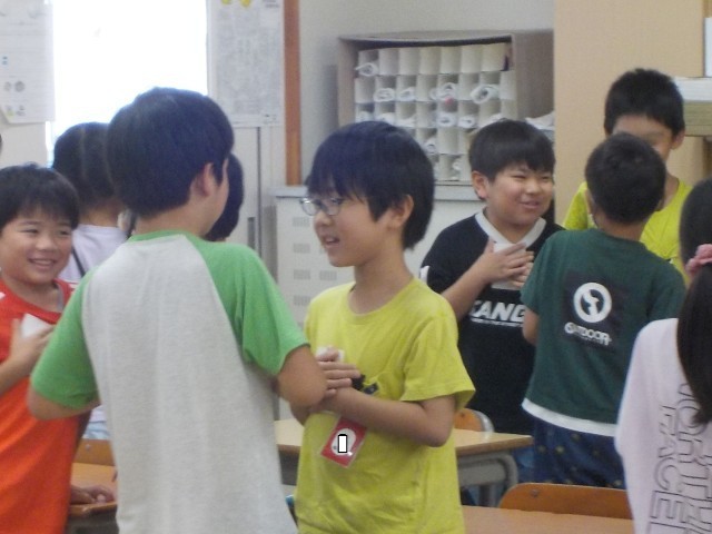 一人ひとりが違ったことばの書かれたカードをもらい、「私は○○です。あなたな何ですか。」と質問しあいながら、自分の仲間を探していきます。