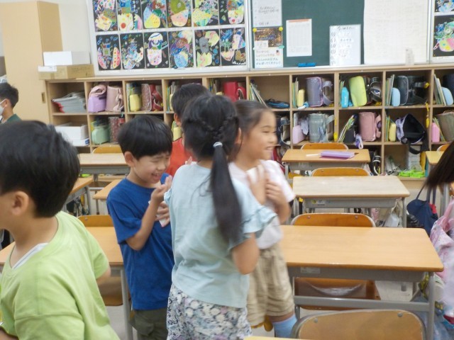 発表後に「あれ?同じグループじゃない?」と気が付いてグループが合体したり、「時間グループじゃなくて、一日の方がいいんじゃない?」など、みんなで話し合って仲間分けができました。体を使ってみんなで協力しながら学習するのは、楽しいですね!