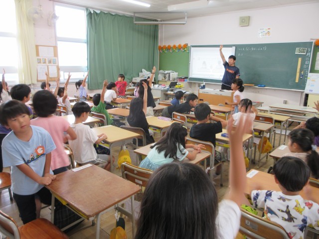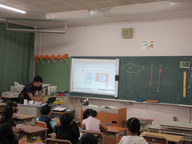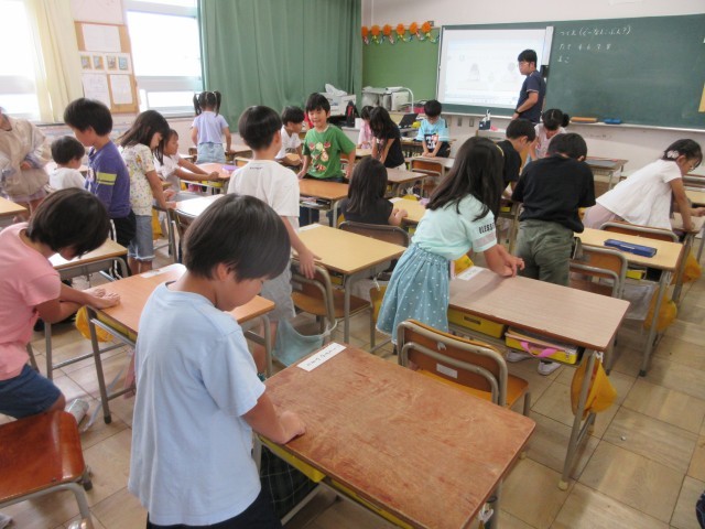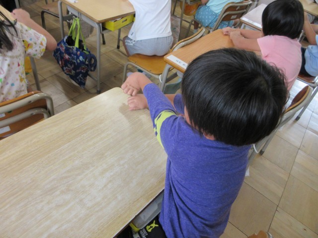 1年生の授業の様子です。算数ではつくえの縦と横の長さ比べをしていました。自分の握った手の大きさでいくつ分か図っていましたね。かわいらしい1年生の握った手はいくつ分になったかな?