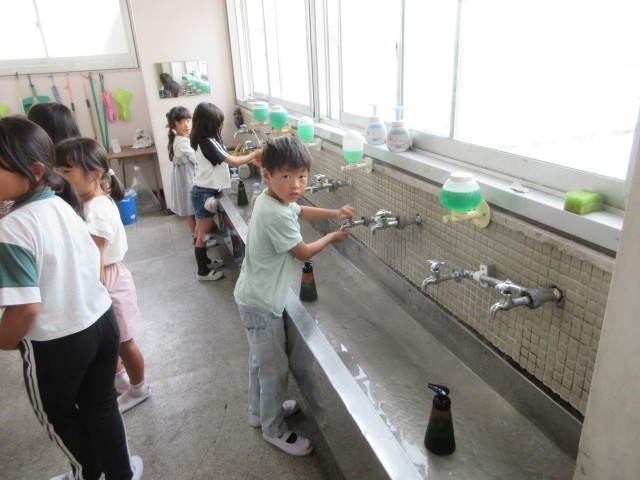 ある日の放課の様子です。「手洗いはいつもやっているよ」「当たり前だよ」と話してくれました。みんなが健康に過ごすための大切な習慣ですね。