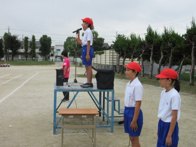 10月7日(火)2年生、4年生、5年生で閉会式の練習をしました。素早く控え席に集合できましたね。始まる前に担当の先生から身なりを整え、安全に式ができるようにお話がありました。誰からも「静かにしてください」と注意の言葉をかけられることなく落ち着いて式が始まりました。5年生の代表のみなさんは司会、あいさつ共にみんなの手本になる素晴らしかったです。本番の運動会もよろしくお願いします。