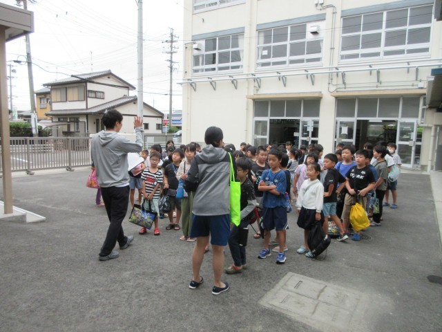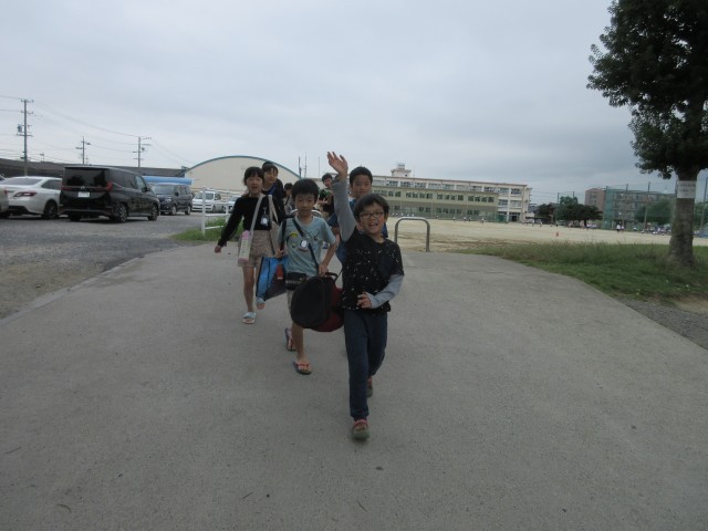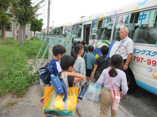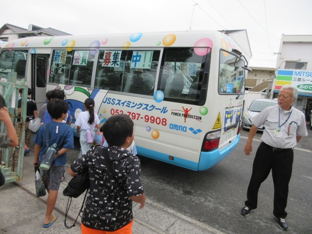 10月14日(火)3年生は最後のプールがあります。後半チーム2組、3組のみなさんも予定通りに出発しました。バスの運転手さんに、とても元気にあいさつができましたね。この後のコース別の練習をがんばってください。