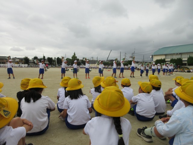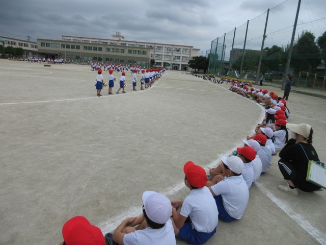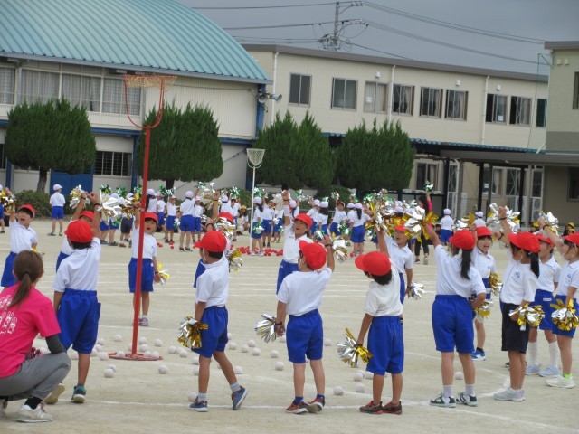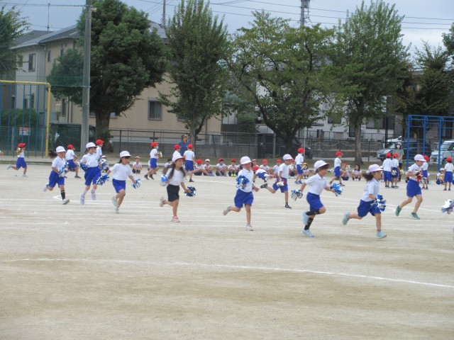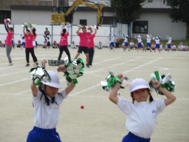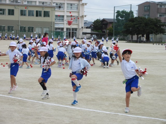 10月14日(火)1年生の運動会練習の見学会がありました。2年生、4年生、5年生が見に来てくれましたね。かわいい1年生に大きな拍手がありました。張り切って玉入れをしたり、ダンスをしたりと一生懸命な1年生です。最後には全員でダンスを踊りますが、その時担任の先生たちも真ん中で1年生のみんなを後ろから応援するように一緒に踊っています。先生が前にいなくても自分たちでダンスができる1年生、とても立派ですね。運動会本番もキラキラ笑顔で輝いてください。