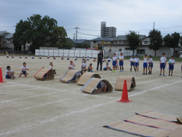 10月14日(火)5年生は運動会練習を1時間行いました。障害物リレーは気合十分の実行委員の掛け声で演技が始まります。この後の競技も練習を重ねて、とてもスムーズにできるようになっています。