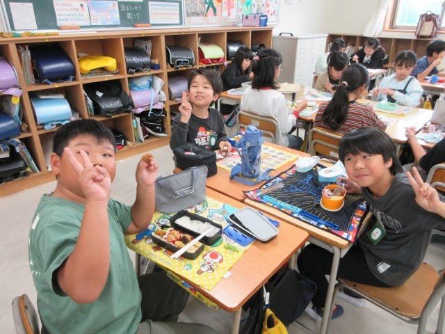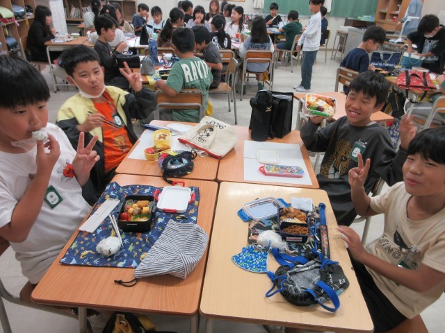 10月16日(木)運動会を予定していたので今日はお弁当です。朝からお弁当を楽しみにしていたみなさんのお昼の様子を紹介します。