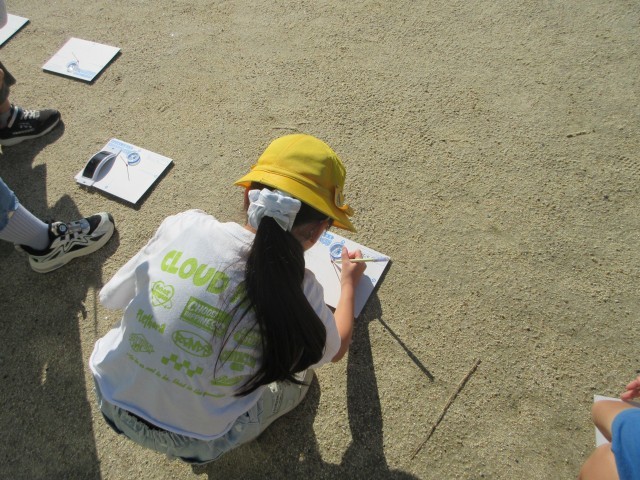 3年生の授業の様子です。理科では「太陽とかげ」の学習をしています。天気のタイミングで観察を進めるので、待ちに待った晴れの日に観察をしました。太陽の向きと影の向きとの関係、午前と午後の太陽の位置と影の向き、方位磁針も使って観察しています。どんなことに気が付いたかな?