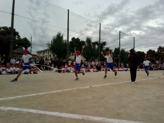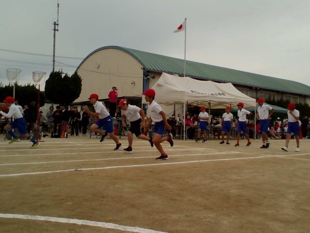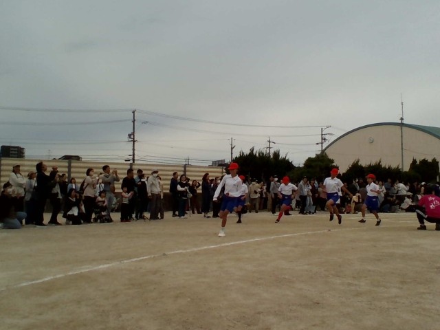 6年生の徒競走の様子です。大きな歓声のなか、全力で駆け抜けました。