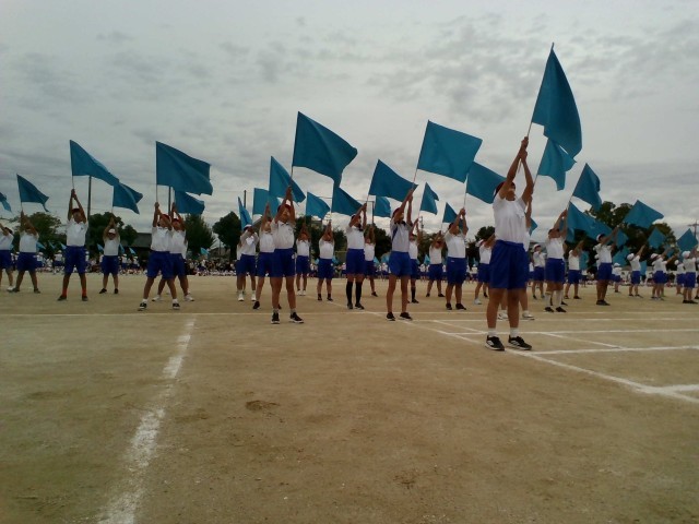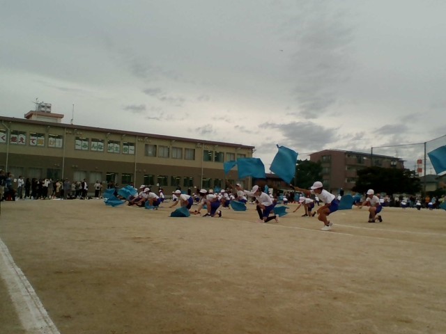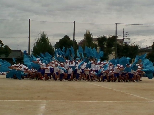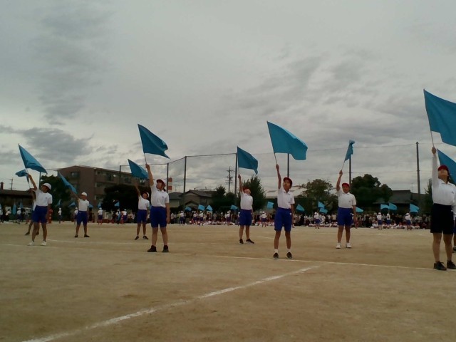 前半最後の種目、6年生の音遊です。フラッグを振る音が静まり返った会場に響いていました。