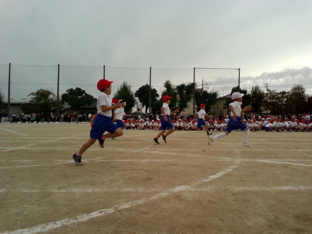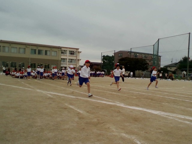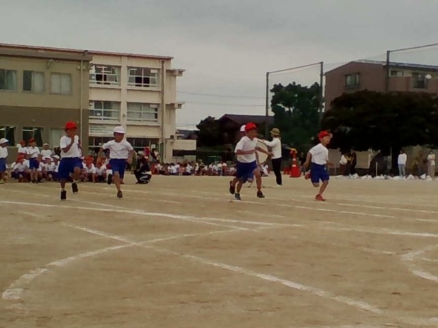 2年生の徒競走の様子です。一生懸命走る姿に、走り終わった児童から大きな声援が送られていました。