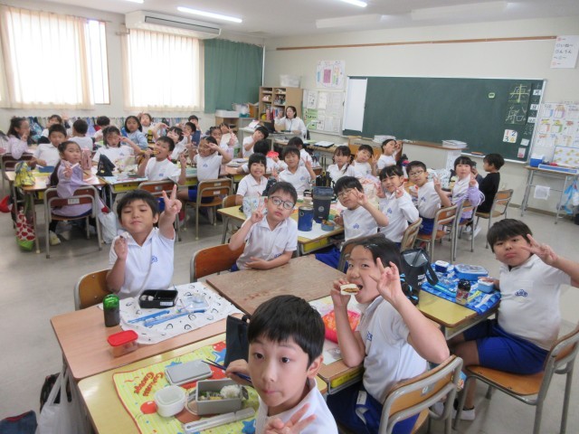 引き続き、西館の2年生と南館4年生のお弁当タイムの様子です。