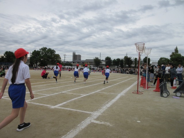 6年生の徒競走の様子です。小学校生活最後の徒競走、みんなが全力で駆け抜けました。さすが6年生のみなさんの徒競走はとても速かったですね。