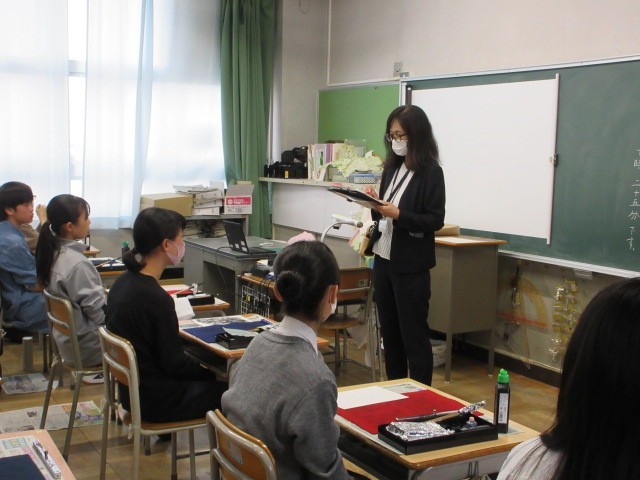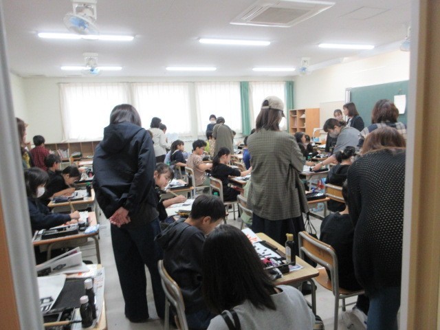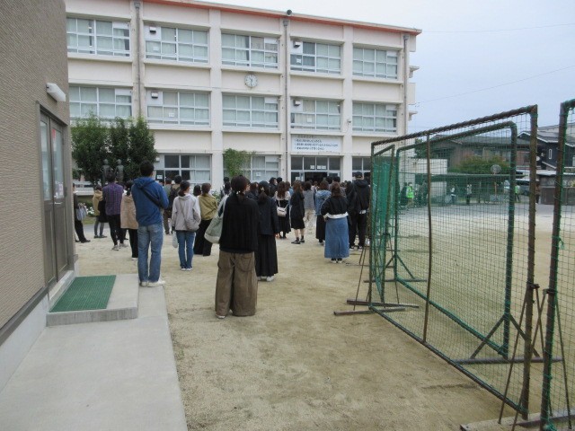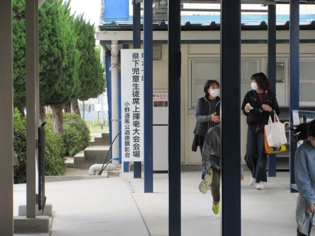 県下より730名ほどの児童生徒が、決められた課題を揮毫する「第90回 県下児童生徒席上揮毫大会」が開催されました。限られた時間の中で、各学校の選手の皆さんが一生懸命に揮毫しました。自分が書いた作品を手に持ち、校舎から出てきた生徒が、とても満足げな表情で家族のもとへ走っていき、その後、作品をもって校舎をバックに写真撮影をしていました。自分の力が発揮できた様子が印象的でした。近隣の皆様、協力員の方々など、多くの方のご協力のもと、大会を開催することができましたことに感謝申し上げます。ありがとうございました。この伝統ある大会を今後も継続していきたいと考えております。大会に参加した全ての児童生徒の作品が道風記念館で12月24日~1月7日に展示されます。よろしければ、児童生徒の皆さんの力作を見に足を運んでみてください。
