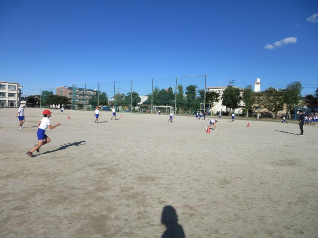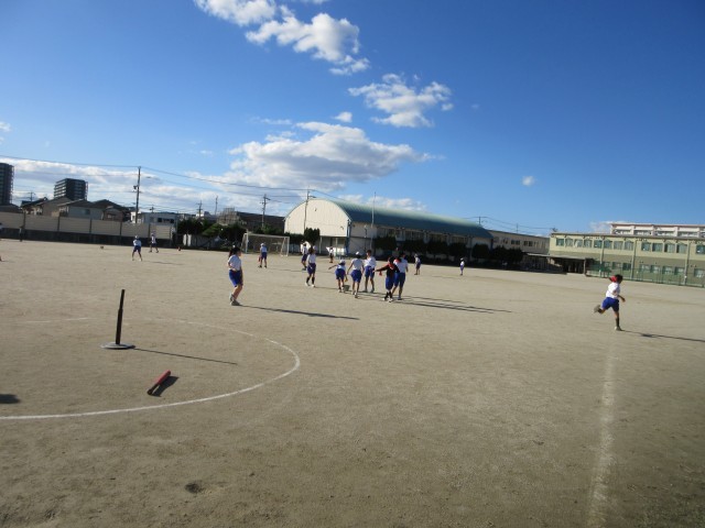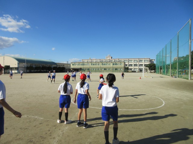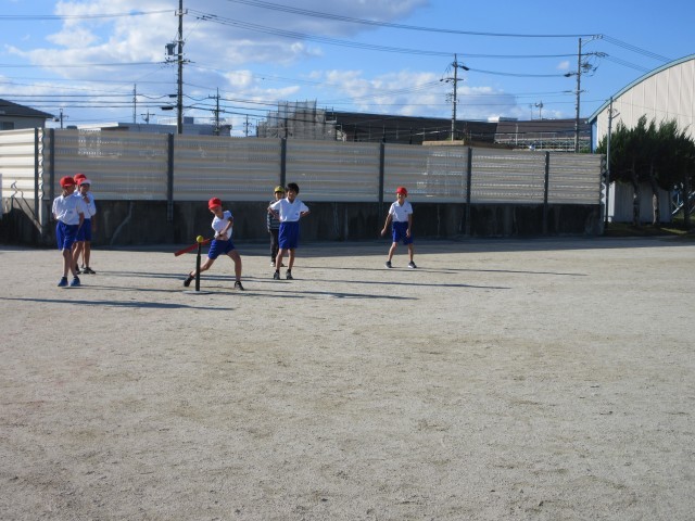 5年生の授業の様子です。Tボールの授業では、「打つ、守る、投げる」と地道な練習を積み重ねてきました。いよいよ試合を始めましたね。さあ、どんな作戦をたてていくのかな?みんなの作戦に期待しています。