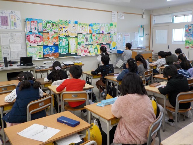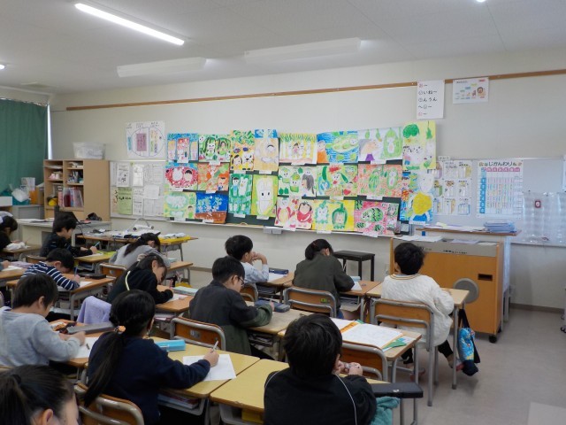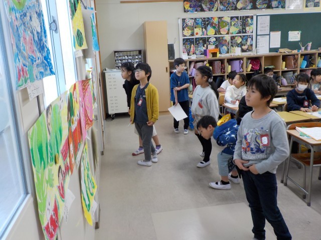 図工の「お話の絵」が完成し、作品鑑賞会を行いました。