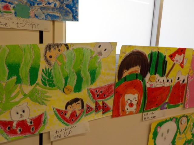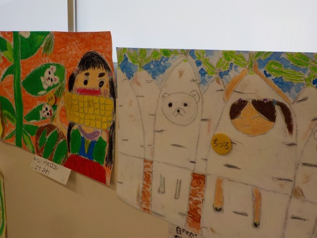 選んだ作品についても、「シロクマの表情が気持ちよさそうで、自分も眠たくなっちゃう」「スイカの色が、クレパスの色を重ねて本物そっくり」「ソラマメの数が少なくて、一番描きたいものが目立っていていい」などなど、するどい観察眼で鑑賞することができました。