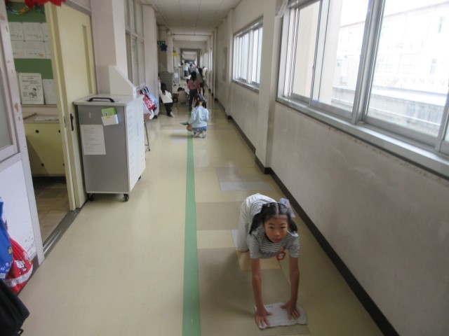 みんなが使うろうかをピカピカに磨いてくれてありがとうございます。特に手洗い場近くは汚れやすいですね。そこを重点的にきれいにしてくれました。きれいにしてくれてありがとう。