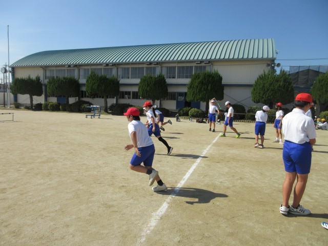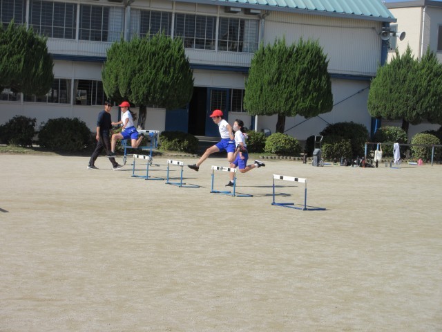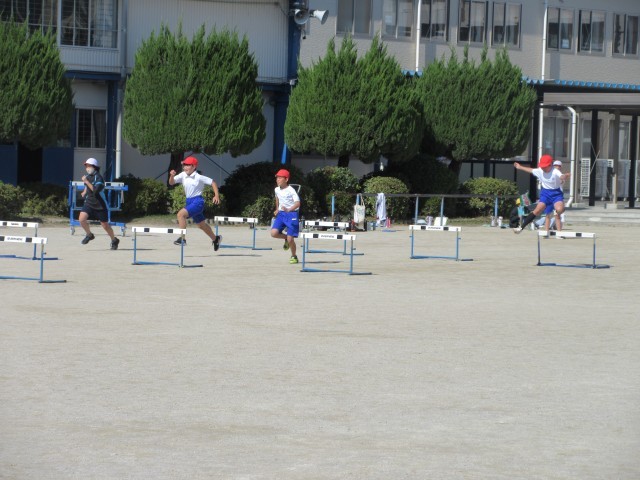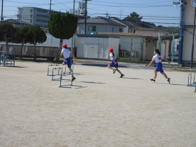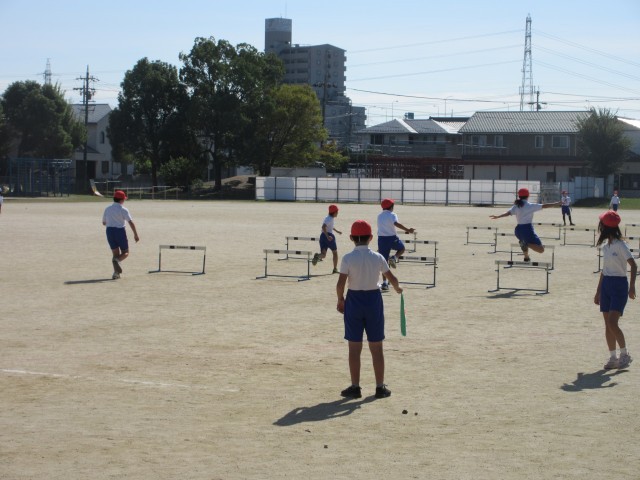 6年生の授業の様子です。体育ではハードル走に取り組んでいます。授業の終わりには記録を取っています。目標タイムが50メートル走のタイムから計算できていて、記録更新をめざしていますね。毎回の積み重ねを大切にしています。