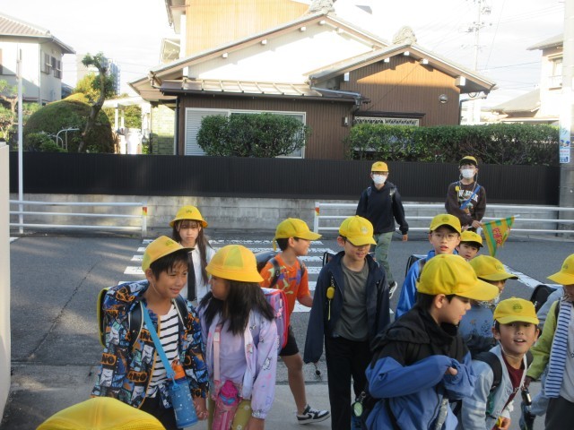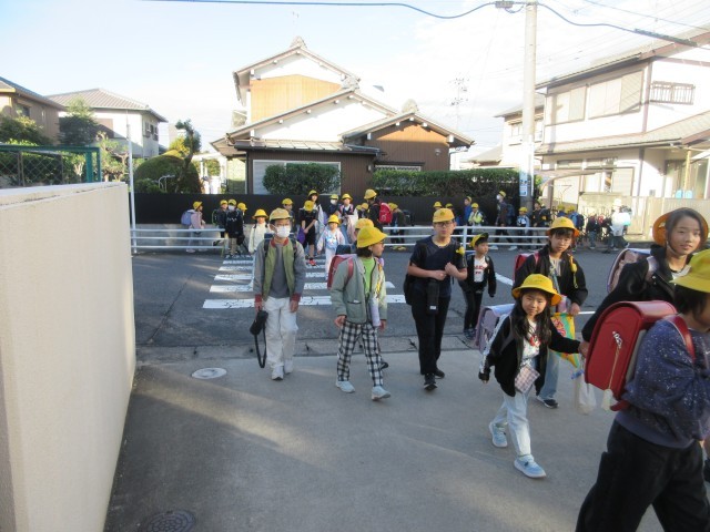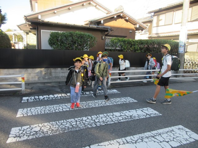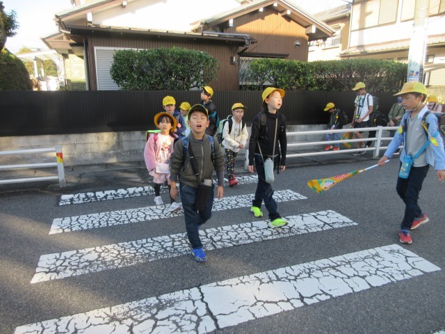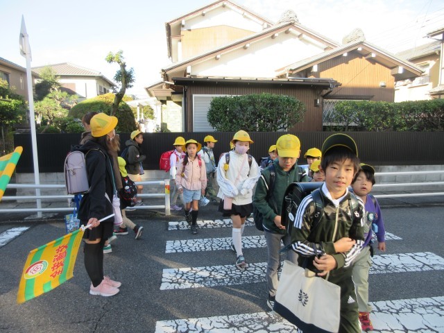 11月6日(木)正門からの登校の様子です。秋晴れの朝となりました。今日は就学時検診があるので、給食を食べたら下校します。正門前で待っていると「今日は兄弟、姉妹の子が学校にくるよ」と教えてくれる子どもたちがいました。来年は一緒に登校できますね。班長さんや副班長さんの話をよく聞いて、交通安全には十分気を付けて元気に登校しましょう。