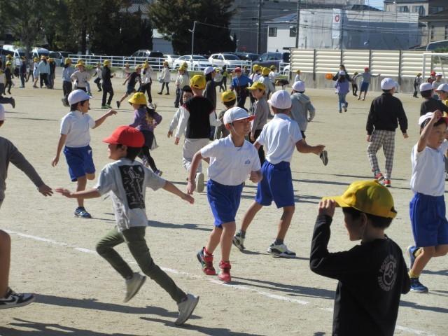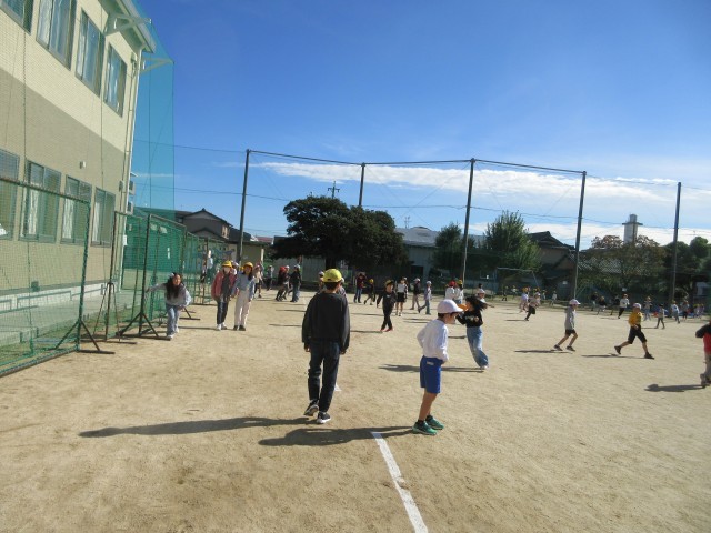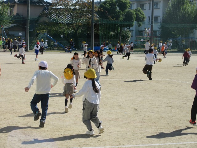 11月6日(水)秋晴れの青空のもと、大勢の小野っ子が外で元気よく遊んでいます。明日もみんなで外で遊ぶことができるといいですね。