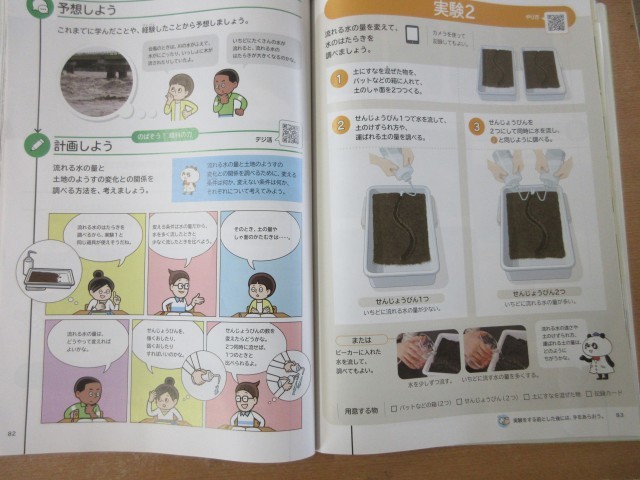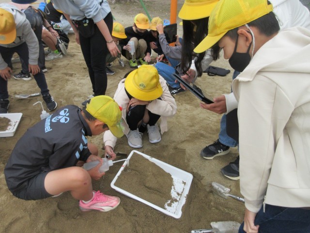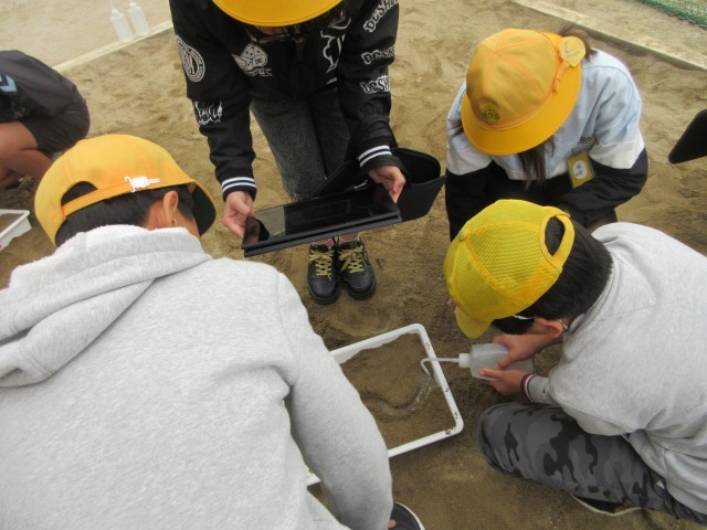 5年生の授業の様子です。理科では「流れる水のはたらき」について学んでいました。斜面をつくって、流れる水の量や流す強さを変えて実験をしましたね。実験の様子はグループごとにタブレット端末で記録をしたので、後から何度でも確認ができますね。