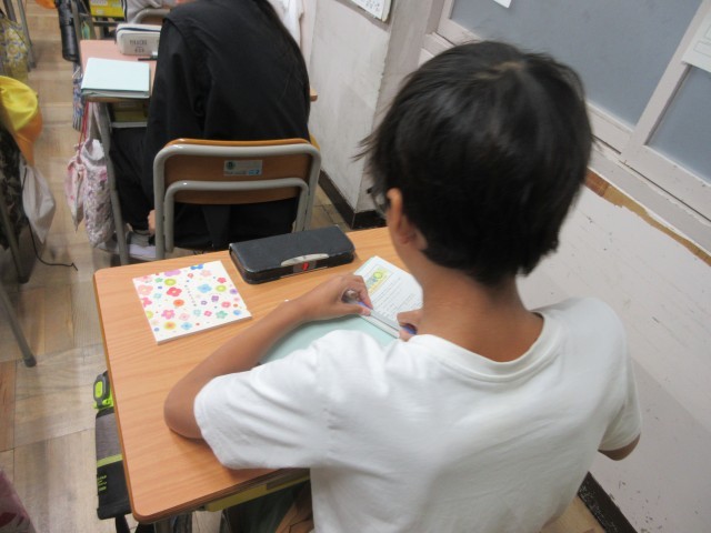6年生は朝の時間に修学旅行のしおりをつくっていました。表紙は修学旅行の見所などが描いてある手作りです。各学級で早速表紙をのりで貼っていました。この後学年や学級でしおりを使った事前学習が進められます。大切なことをきちんと記録して、毎日を積み上げていきましょう。