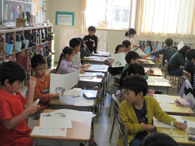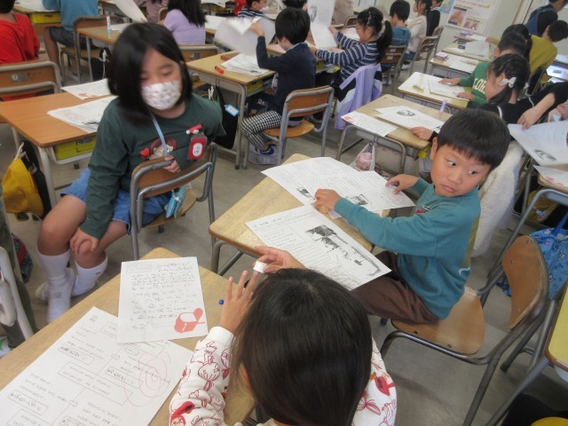 2年生の授業の様子です。国語では「てがみ」の学習をしています。学習のなかで「かえるくん」「がまくん」にてがみを書いていました。