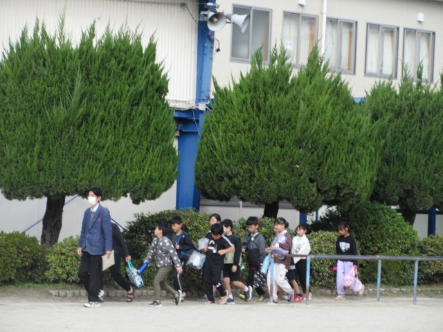 11月11日(火)4年生のプール最終日です。後半チームも予定通り出発しました。練習の成果を十分出してくださいね。気を付けて行ってらっしゃい。