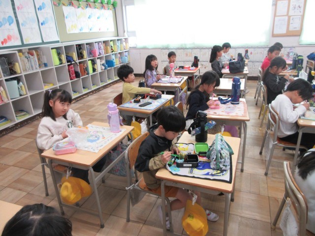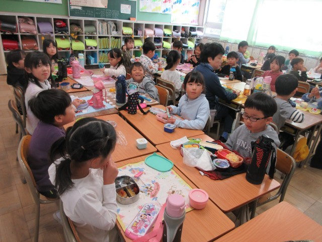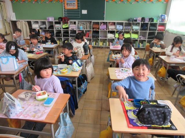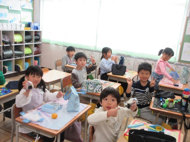 11月12日(水)今日は校外学習の予備日だったので、1年生のみなさんはお弁当を持って登校しましたね。お昼の時間が更に待ち遠しかったと思います。保護者の皆様、お弁当を用意して頂き、ありがとうございました。笑顔いっぱい、お弁当タイムの様子をお知らせします。
