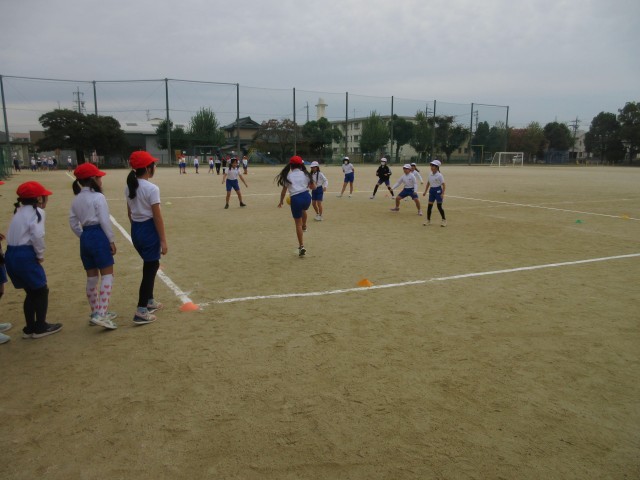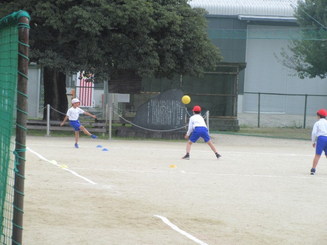 3年生の授業の様子です。体育ではキックベースに取り組んでいます。「お願いします」あいさつで始まったゲーム。どのチームも守備の間を抜けるように蹴ろうと作戦をたてたり、チームを応援したりと張り切っています。