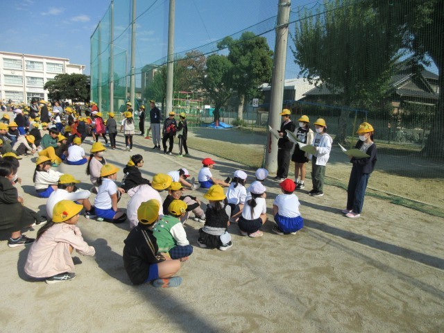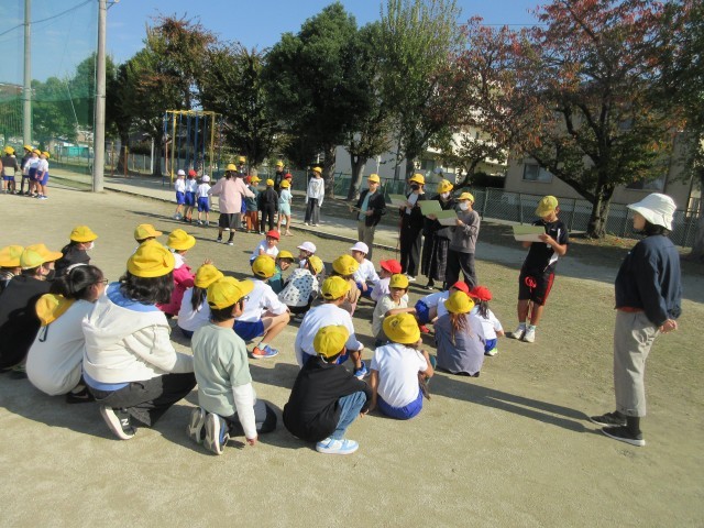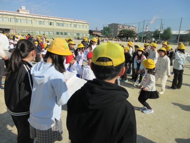 引き続き、なかよし班遊びの様子です。6年生の説明が終わった後はいよいよ大縄跳びが始まります。