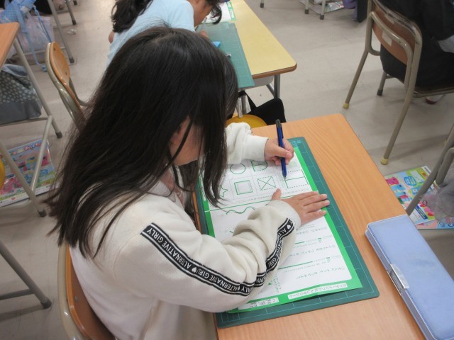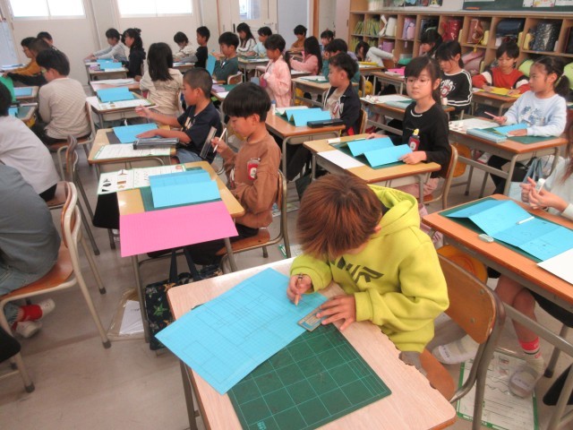2年生の授業の様子です。図工では「まどをあけたら」の学習を進めています。まずは、カッターナイフの使い方を覚え、練習用紙を実際に切ってみました。慎重にカッターナイフを使っています。