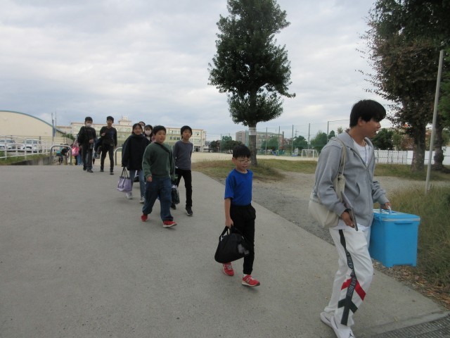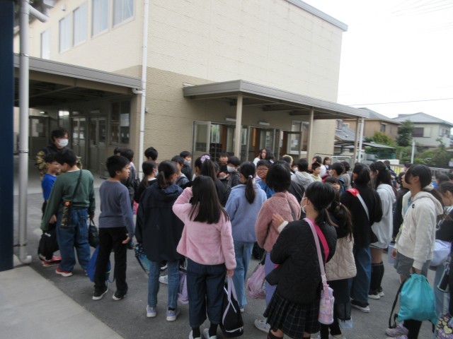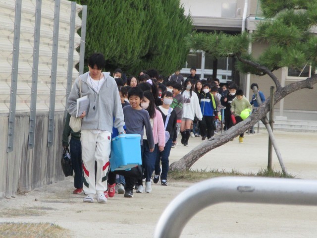 11月18日(火)5年生はプールの授業に予定どおり出発しました。さっと並んで素早く行動できる5年生すばらしいですね。気を付けて行ってらっしゃい。