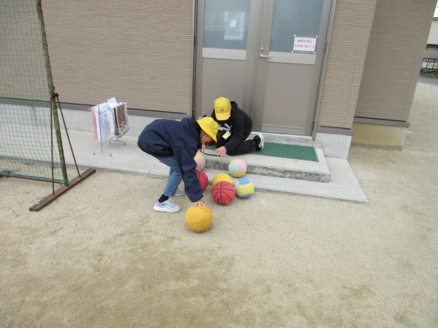 体育委員さんが、体育器具庫のボールの空気を入れてくれました。みんなが授業でいつでもボールが使えるようにお仕事をしてくれています。いつもみんなのためにありがとうございます。まさに縁の下の力持ちですね。
