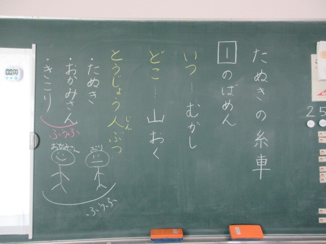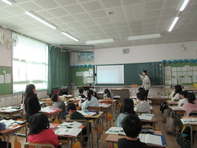 1年生の授業の様子です。ALTと担任による外国語の活動がありました。アルファベットに関わる歌を英語で歌いました。国語の授業がありました。お話の「いつ」「だれが」などの内容を確認していました。どのクラスもがんばって学んでいます。