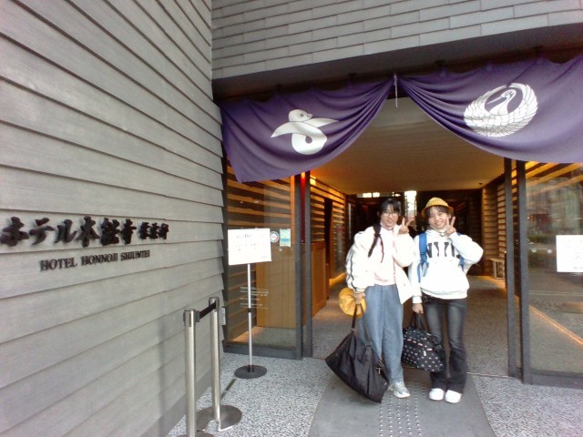 修学旅行の一コマです。ホテル本能寺到着の様子です。順調に日程が進み、予定よりも20分ほど早くホテル本能寺に到着しました。時間を大切にしているみなさんの行動のおかげですね。