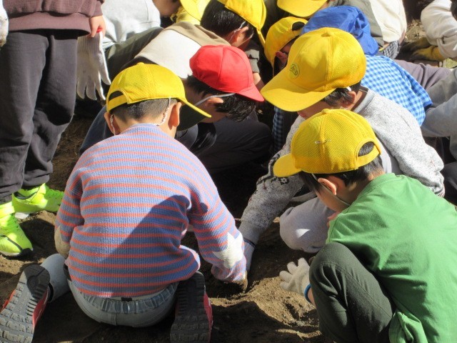 2年生が、育てたサツマイモを掘りました。みんなで協力して掘りました。おいしそうなお芋です。収穫の秋ですね。