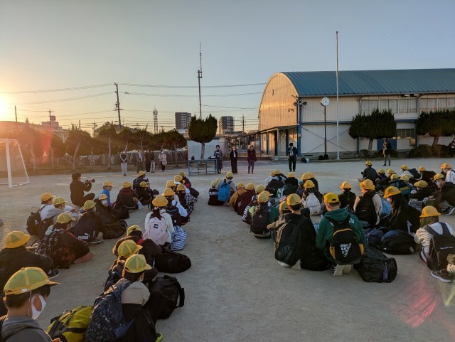 予定通り、6年生を乗せたバスが学校に到着し、解散式を行いました。