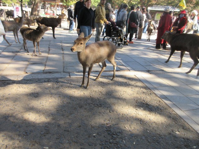 駐車場から東大寺へ向かっています。鹿を探しながら楽しい移動になりました。だれが最初に鹿を見つけられたかな?
