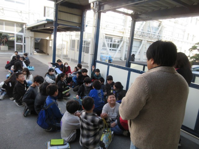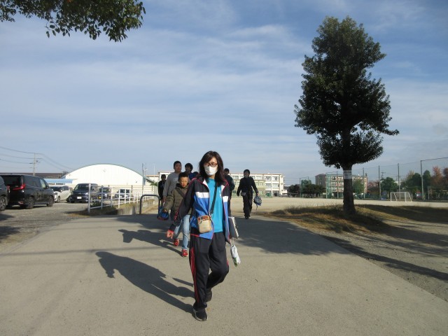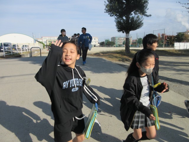 11月27日(木)5年生の後半チームも出席のメンバー確認の後、予定通りプールへ出発しました。風がなくて穏やかな天気になってよかったです。気を付けていってらっしい。