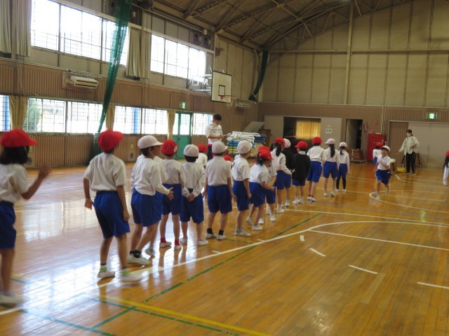 自分ができる環境(跳び箱の段数)を自分で選んで挑戦していました。どの子も助走からやる気満々!!跳べた後の決めポーズまでしっかりできていた子もいました。