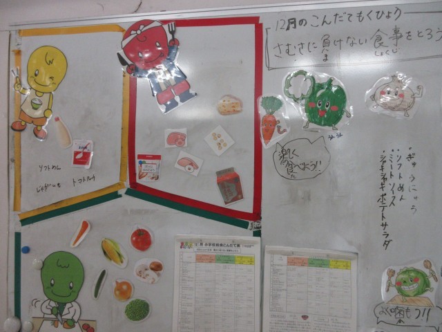 12月5日(金)今日の給食一言話です。ソフトめんについてでしたね。ソフトめんの正式な名前は「ソフトスパゲティ式めん」ろいい、昭和35年に学校給食の主食の種類を増やすために開発されました。強力粉で作った日本特有のめんで、1食ずつ袋に入っています。のびにくく消化がよいのが特徴です。春日井市では昭和43年に「ソフトめん」が初めて給食にでました。ソフトめんは袋のまま半分か4つに分けてから、混ぜると食べやすいですよ。